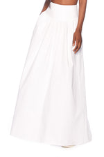 warm weather chic in our poplin drop waist skirt. this airy drop skirt with crisp cotton poplin is a summer must have. its elastic back panel and hidden zipper make it breathable and a summer must-have. style it with our matching poplin string top and a chunky jewelry to make it a statement!