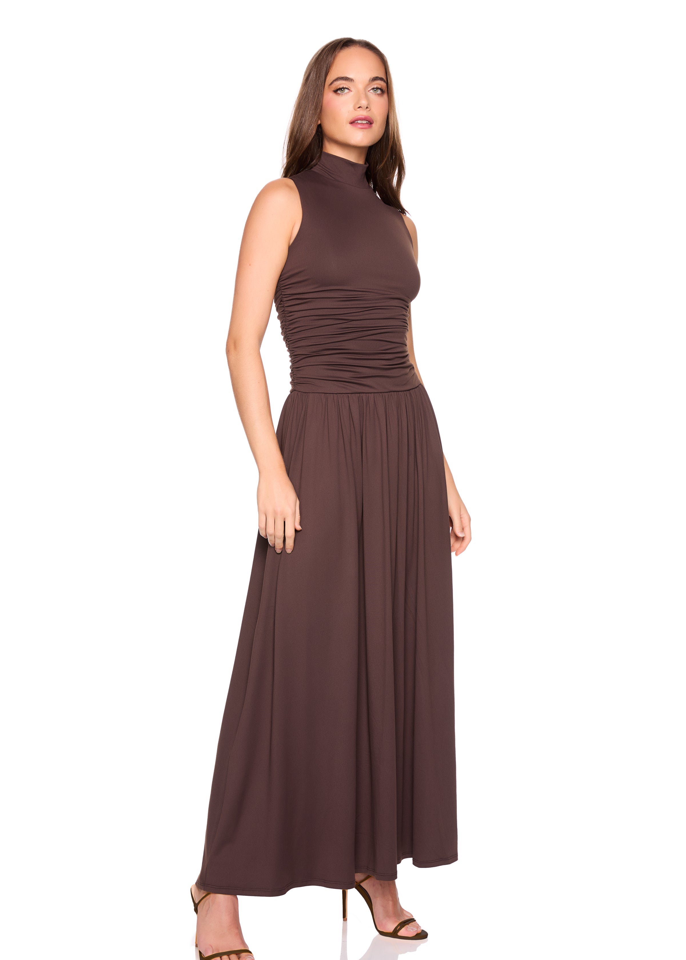 mock neck gathered long sleeve dress
