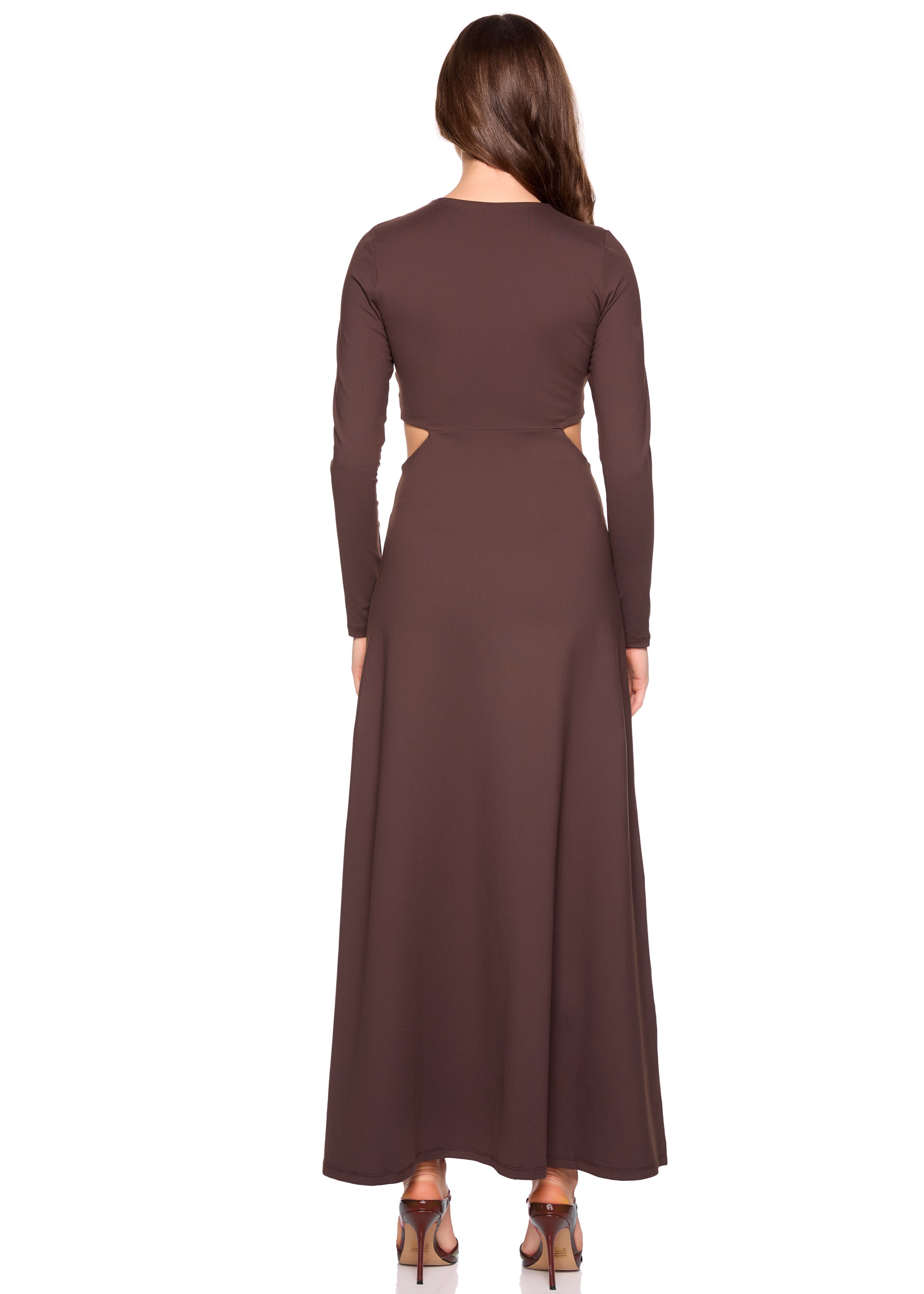 crew side cut out slit long sleeve dress