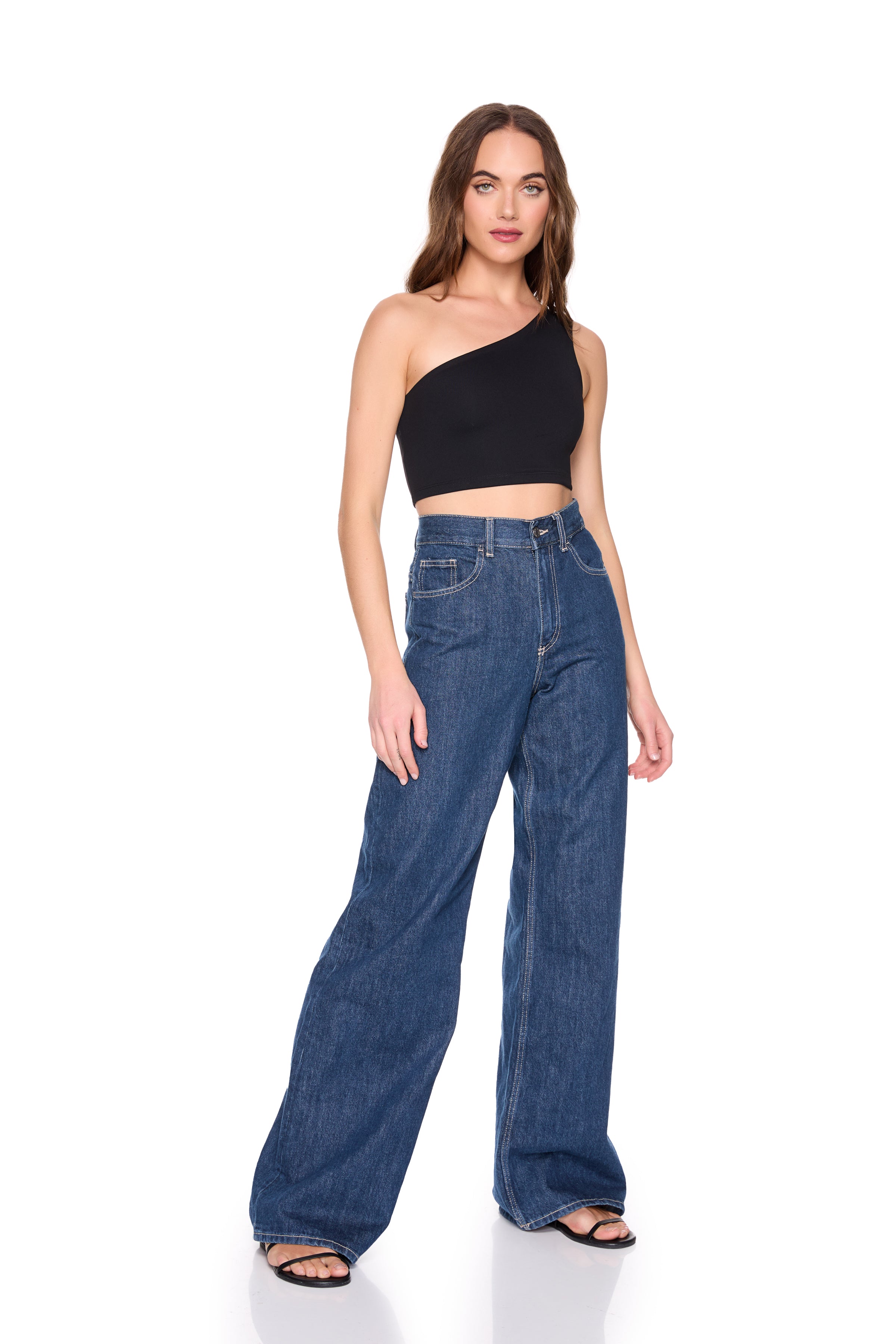 a little black top is a must-have staple piece in your closet! our essential one shoulder crop top is the perfect everyday tank for all of your activities. dress it down with a pair of sneakers and head on over to the park for a coffee date. As seen below, match this top with a strappy heel for an espresso martini!