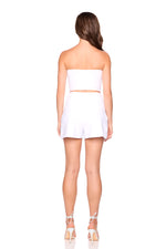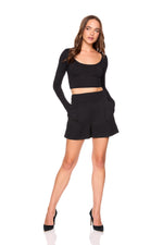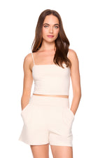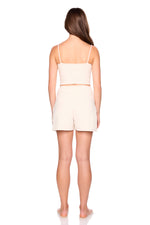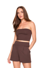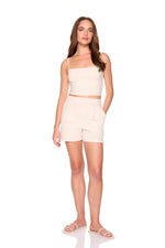 look effortlessly put-together with our relaxed-fit pleated shorts. featuring a comfortable elastic waistband and playful pleats, these shorts are perfect for running errands or lounging poolside. its pleated front and side-seam pockets create a flattering silhouette. pair this with our core crop top and a sandal!