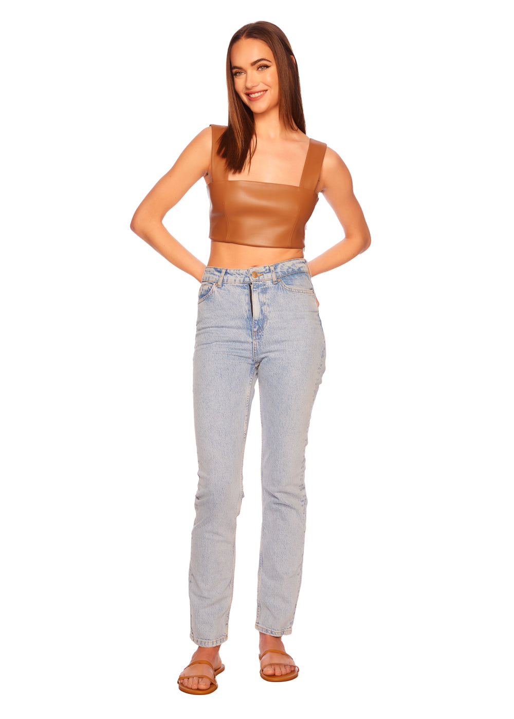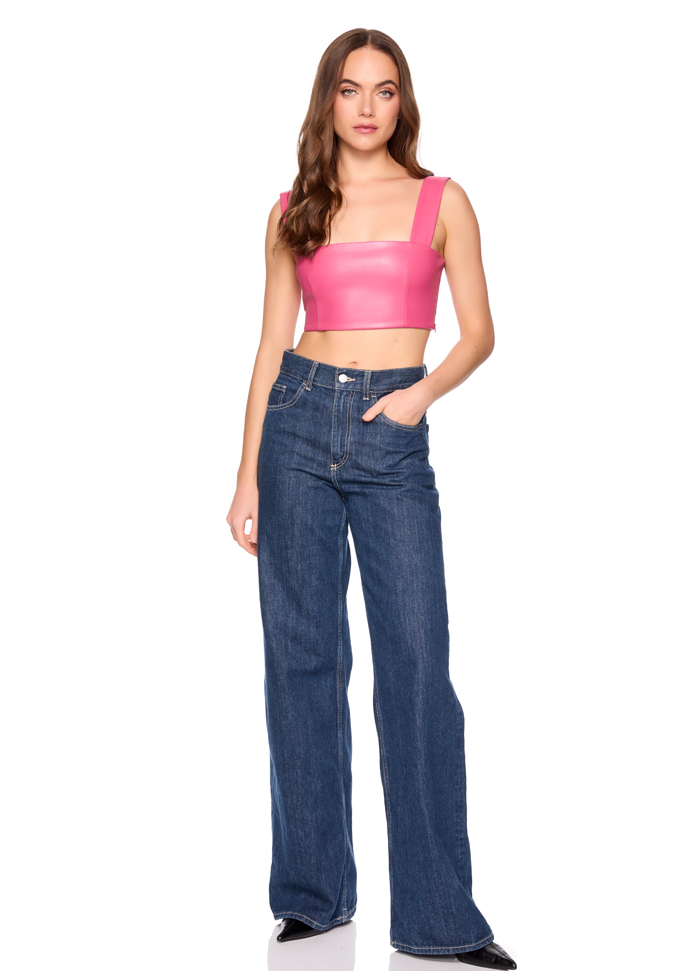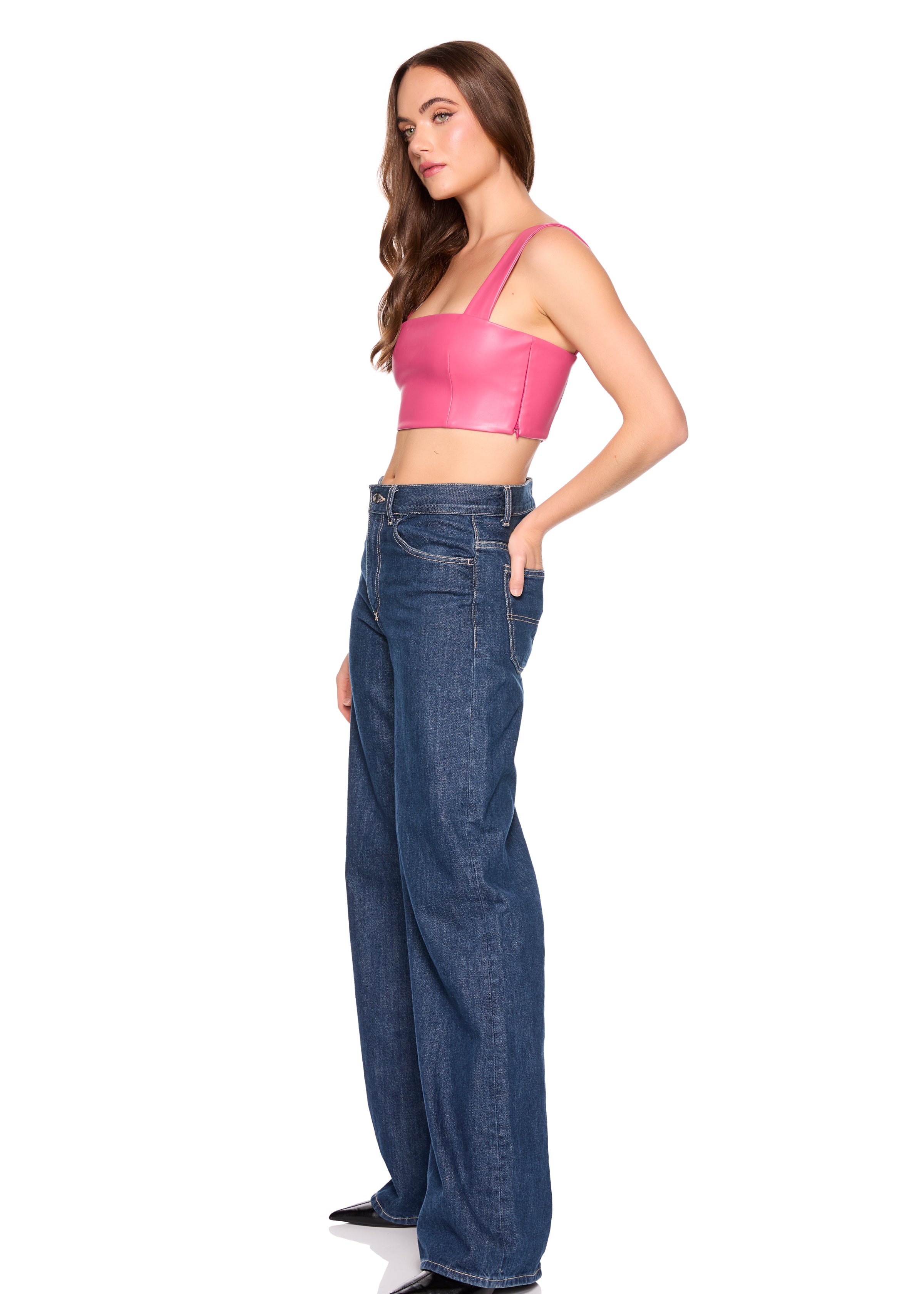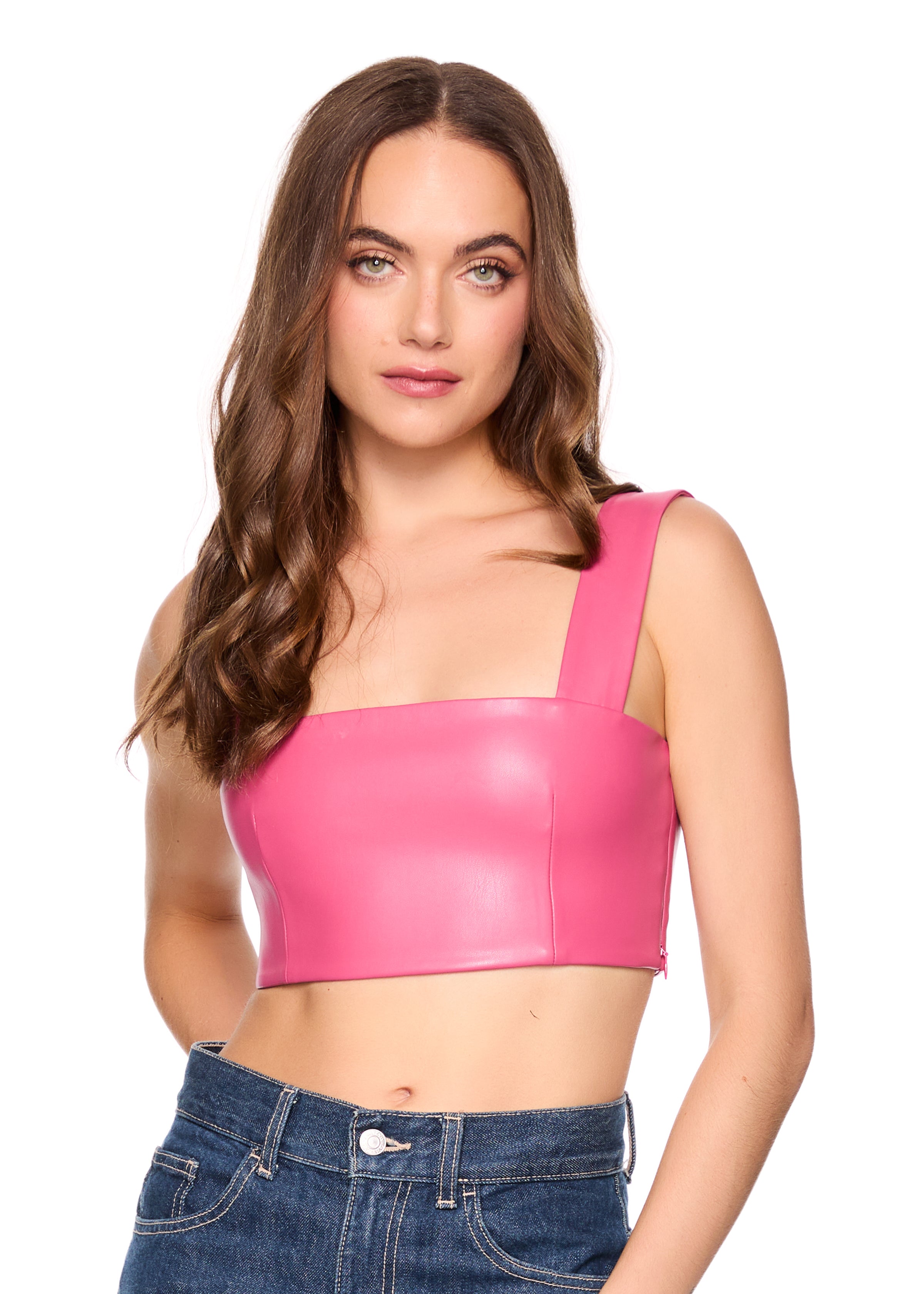 faux leather wide strap top