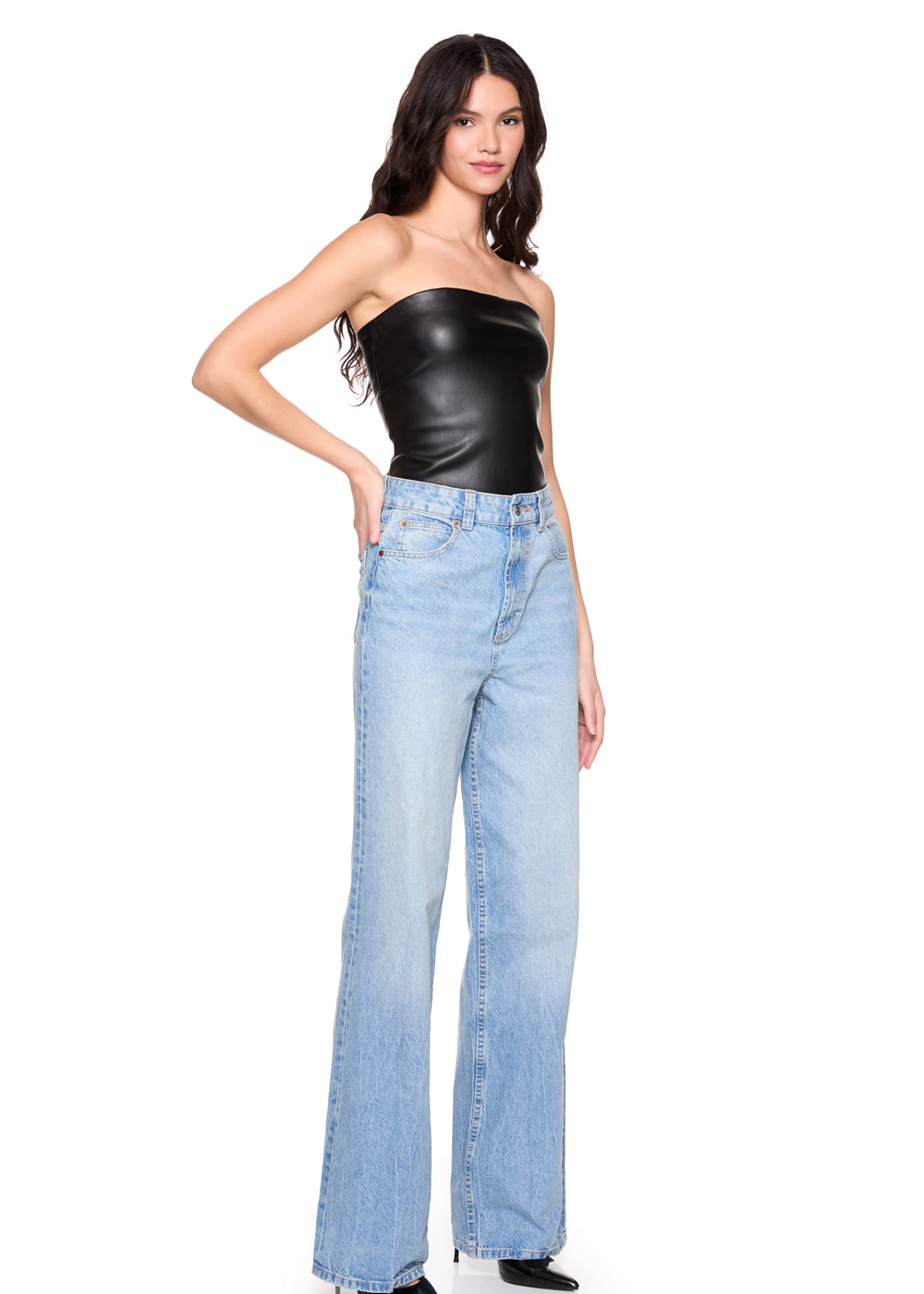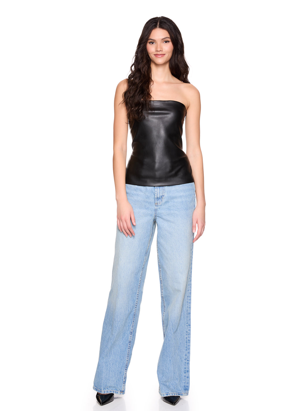 faux leather tube top black