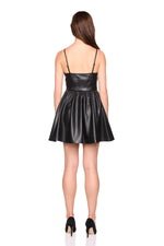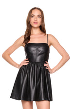 faux leather corset string dress black