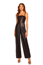 faux leather square neck tank jumpsuit