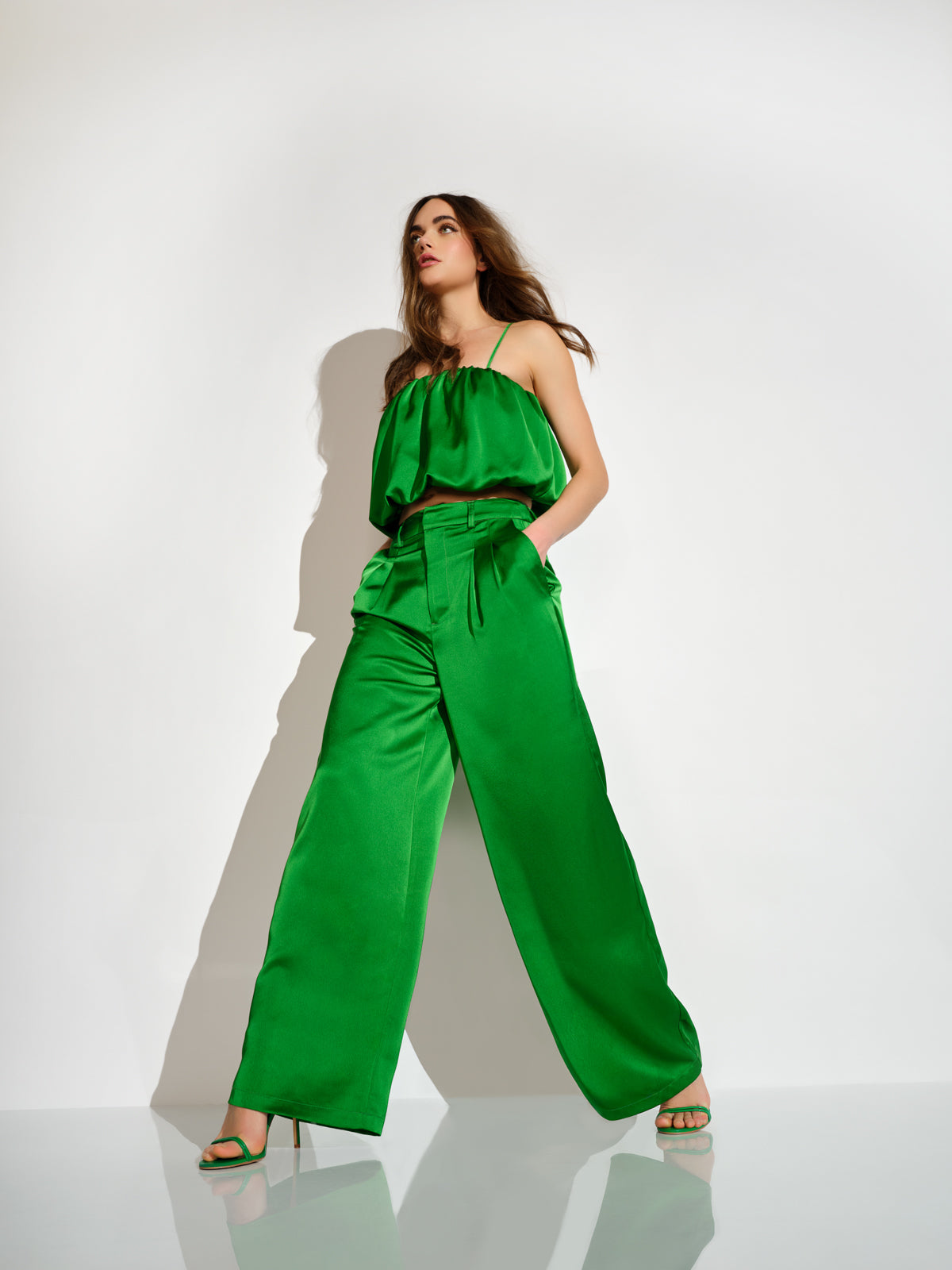 satin pleated pant