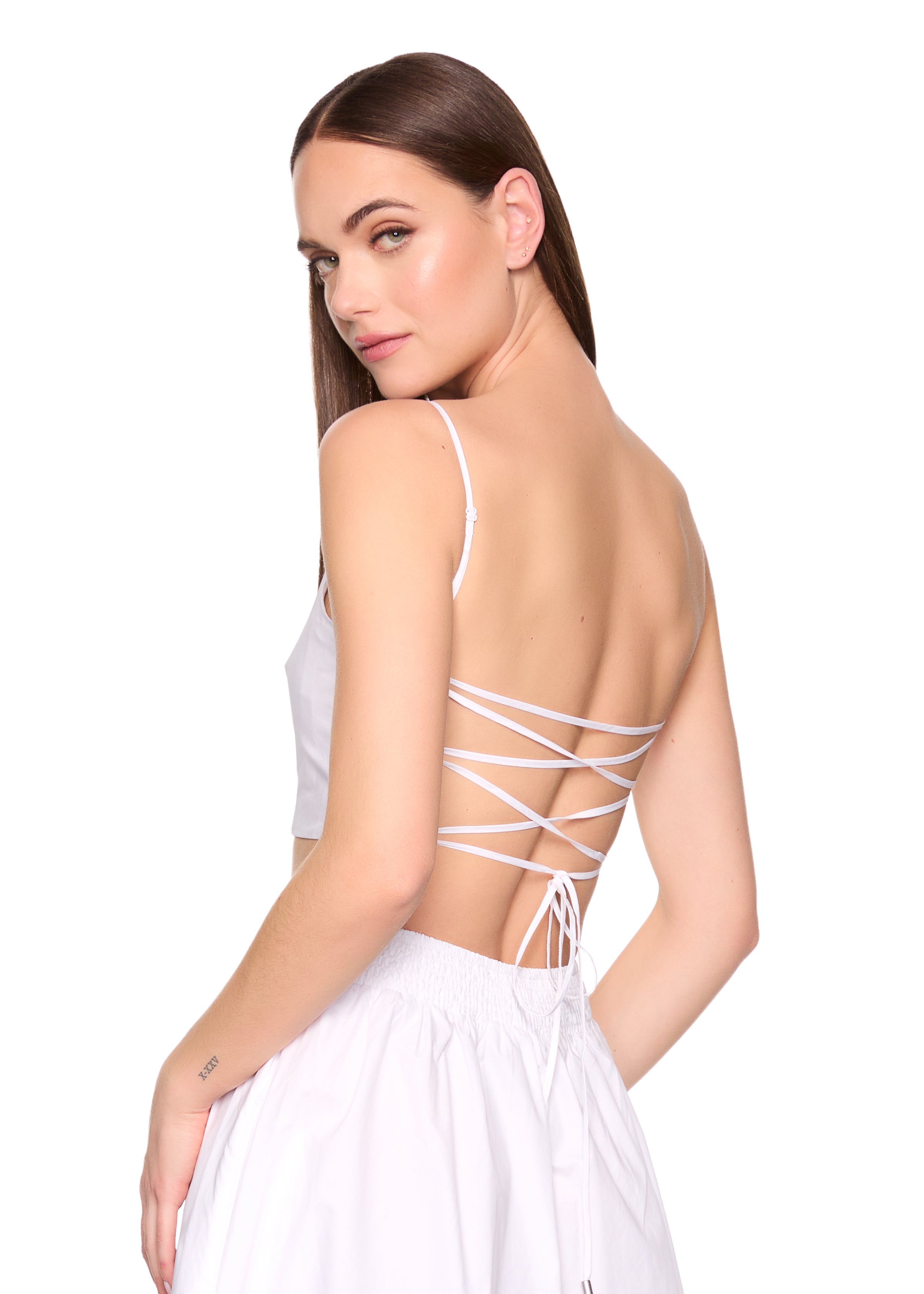 poplin open back tie top
