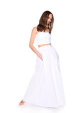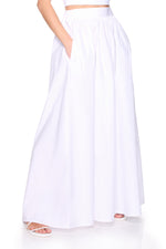 ready to rock your summer vacation? whether you're summering on the coast of italy or having a staycation, our long poplin drop skirt with an elastic waist band, will leave you best dressed at your sunset cocktail hour. pair is with a strappy sandal and have yourself a night!