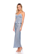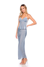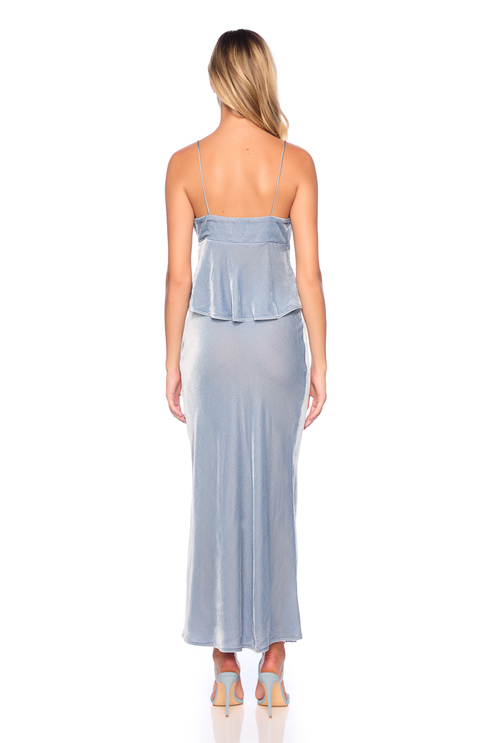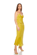 our velvet silk midi skirt drapes beautifully in a soft velvet that flatters your figure. the fit and flare silhouette skims your curves without clinging, creating a long, lean look. the midi length hits at the knee, adding elegance and versatility to your wardrobe. pair it with our matching velvet silk bias string top.