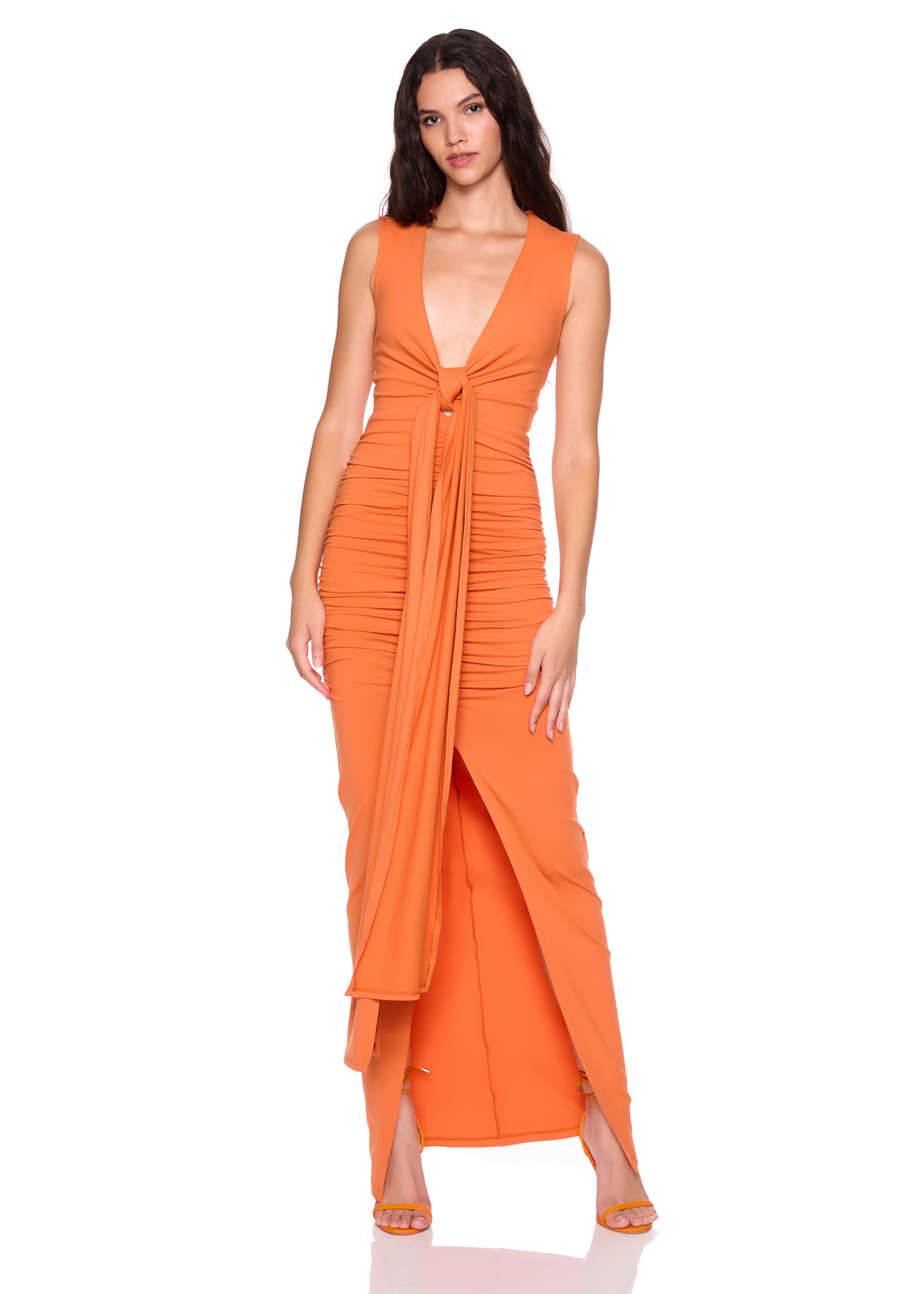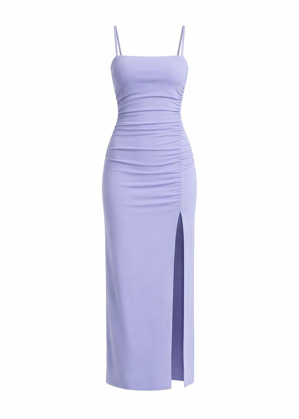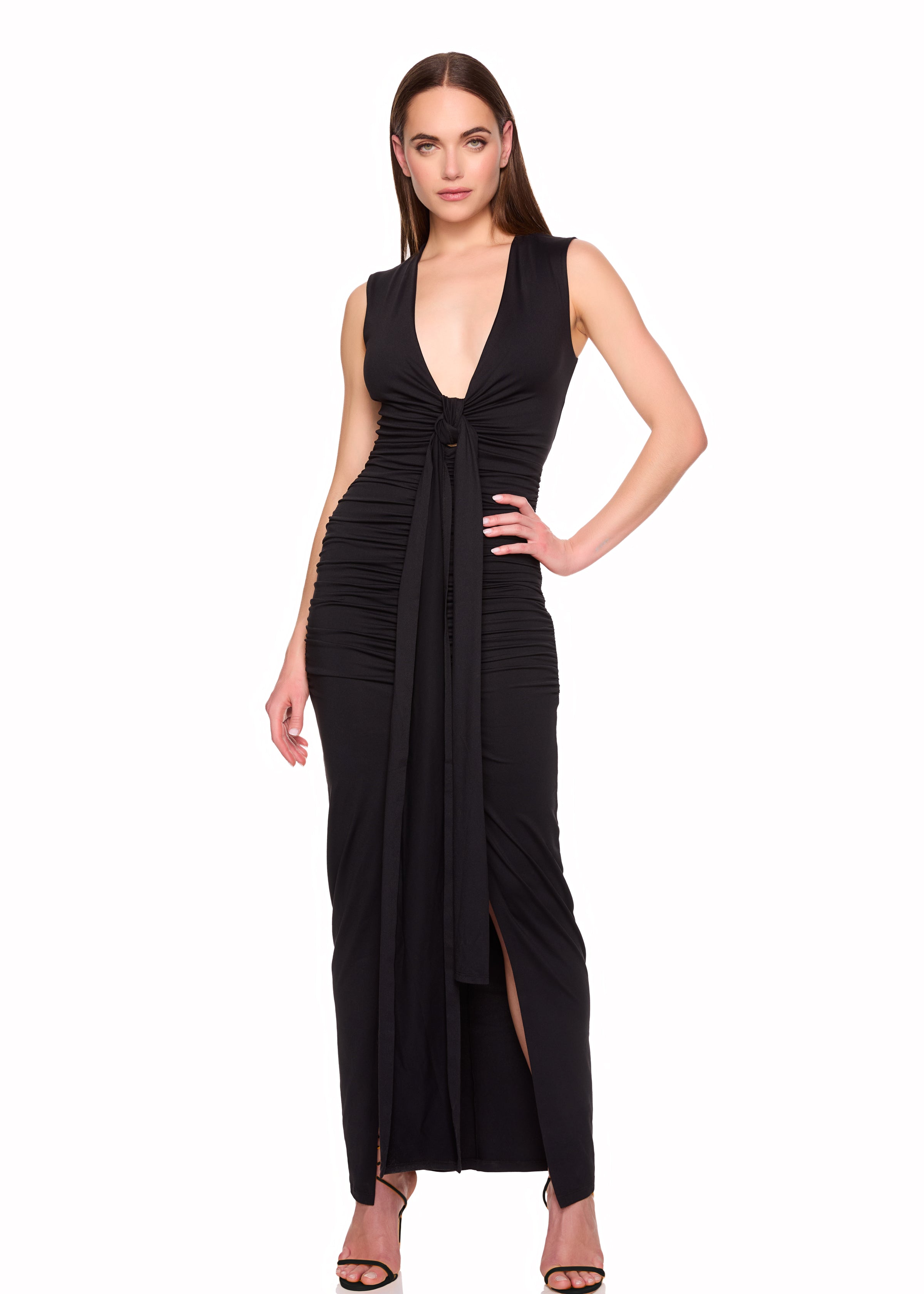 string gathered slit front dress