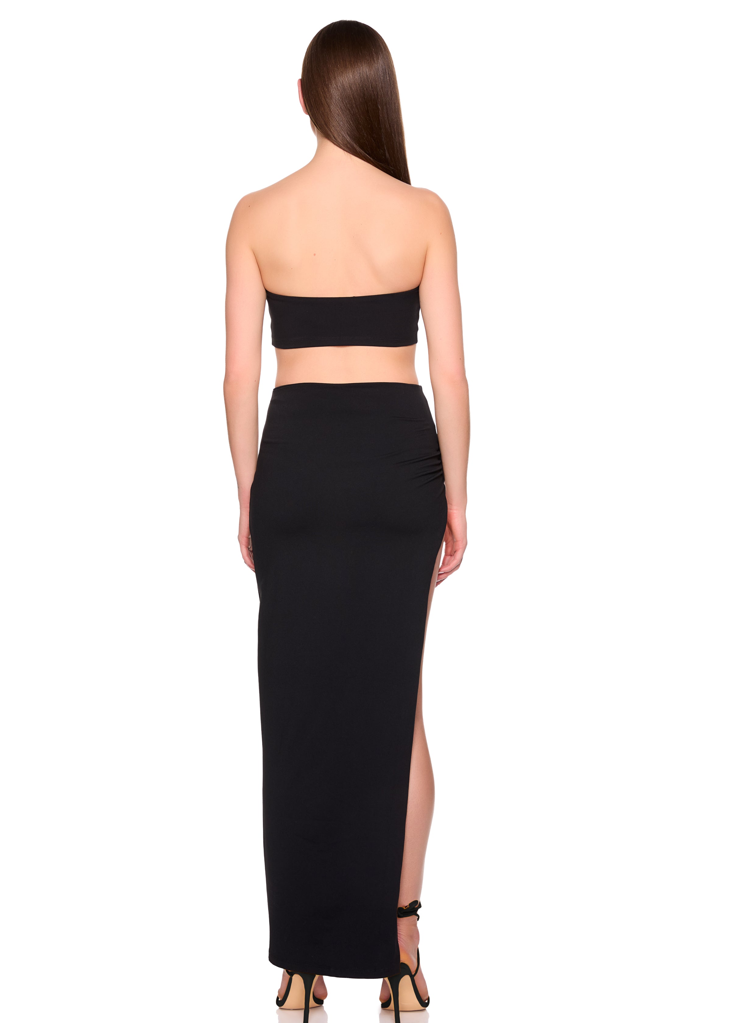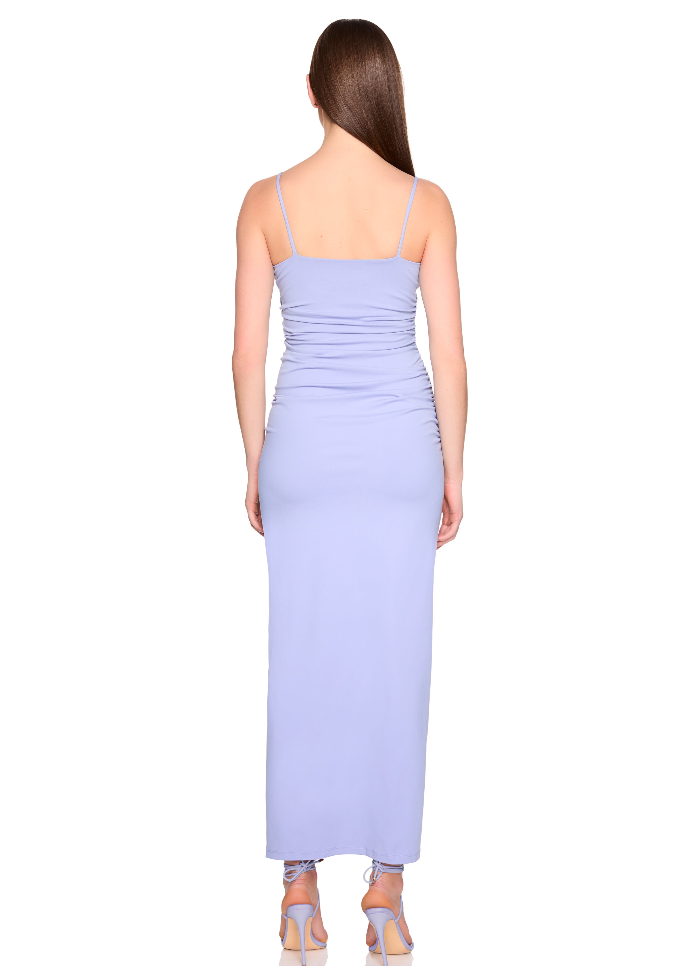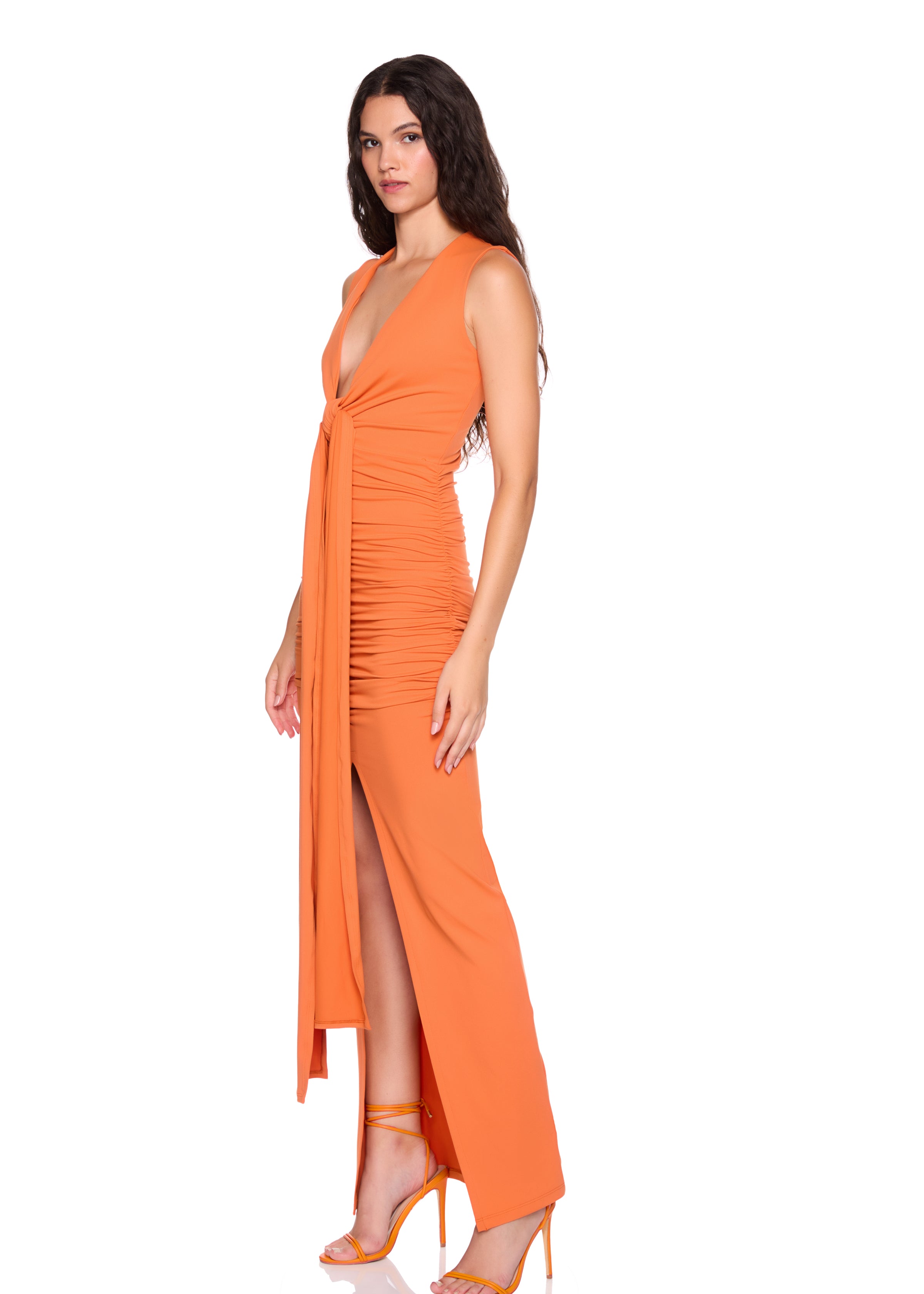 string gathered slit front dress