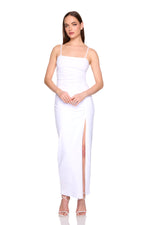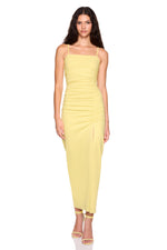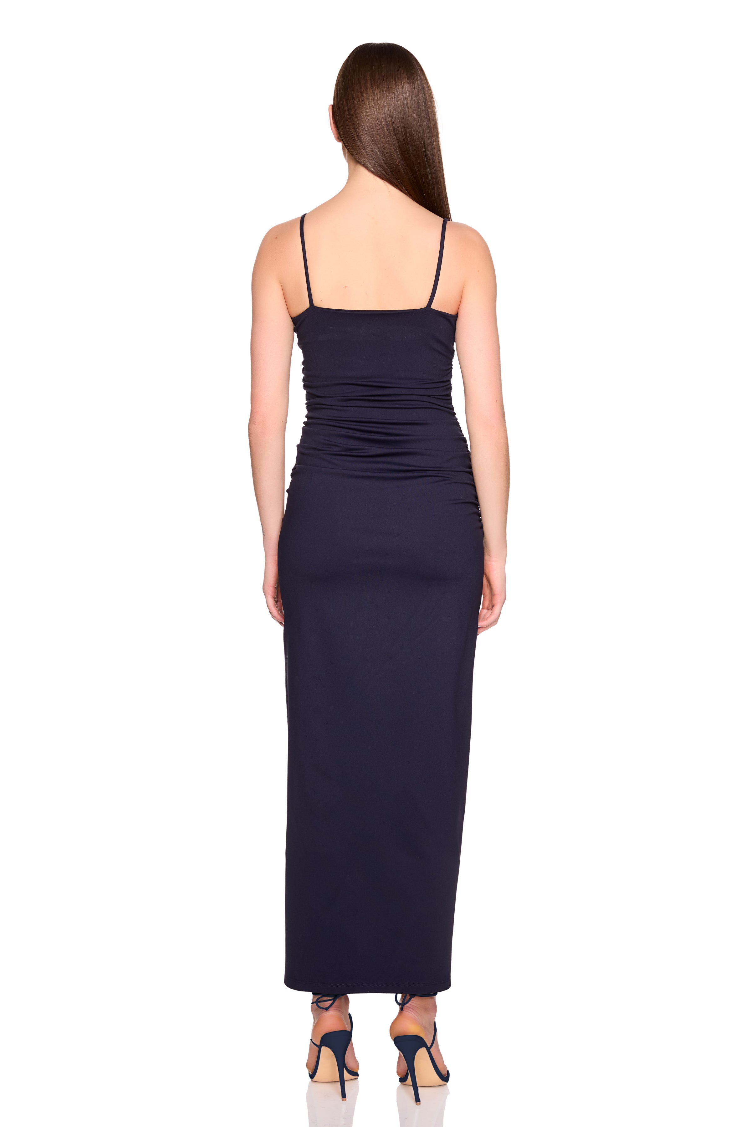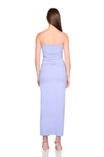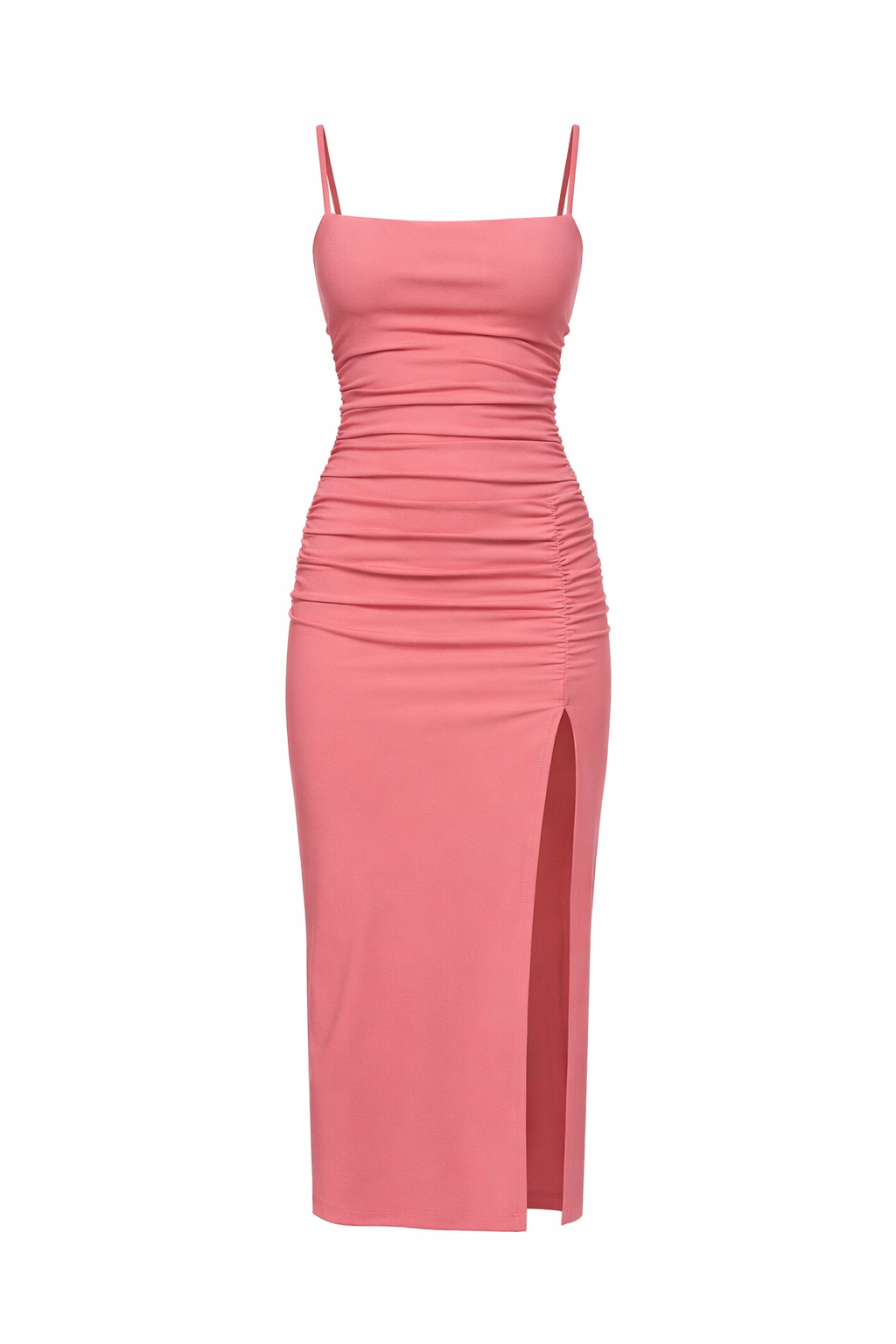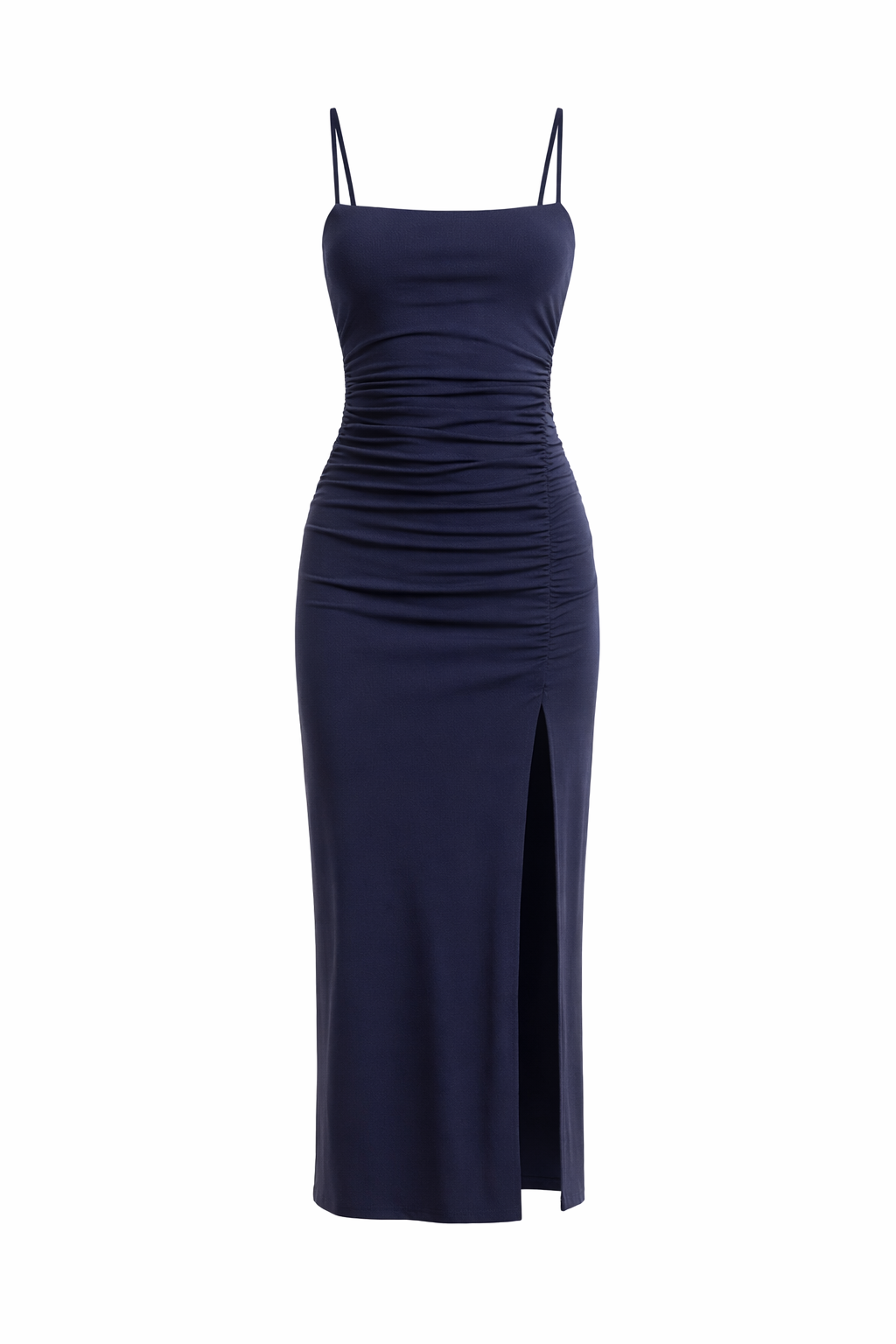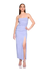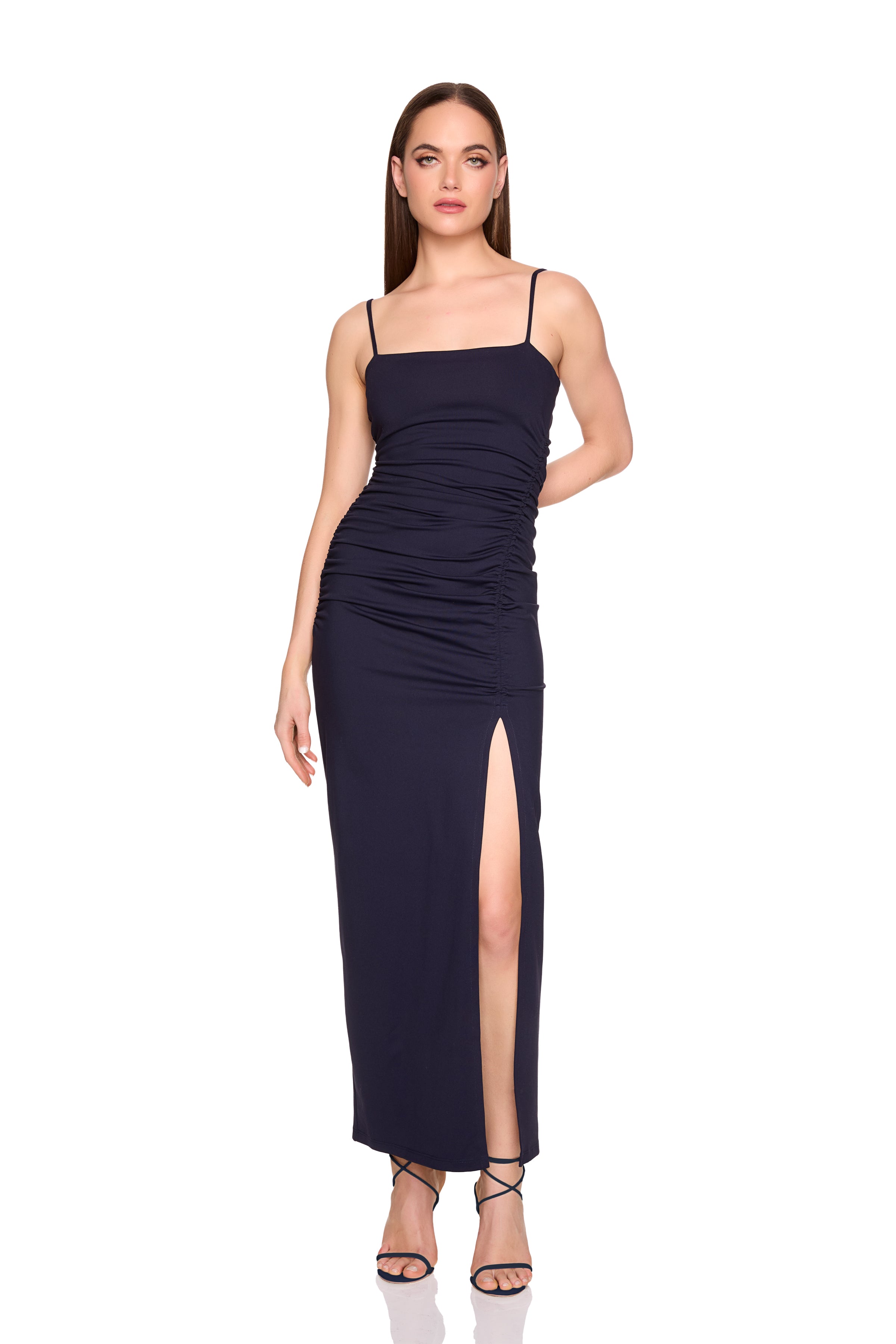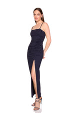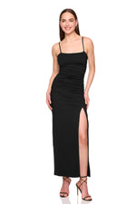 string gathered slit front dress