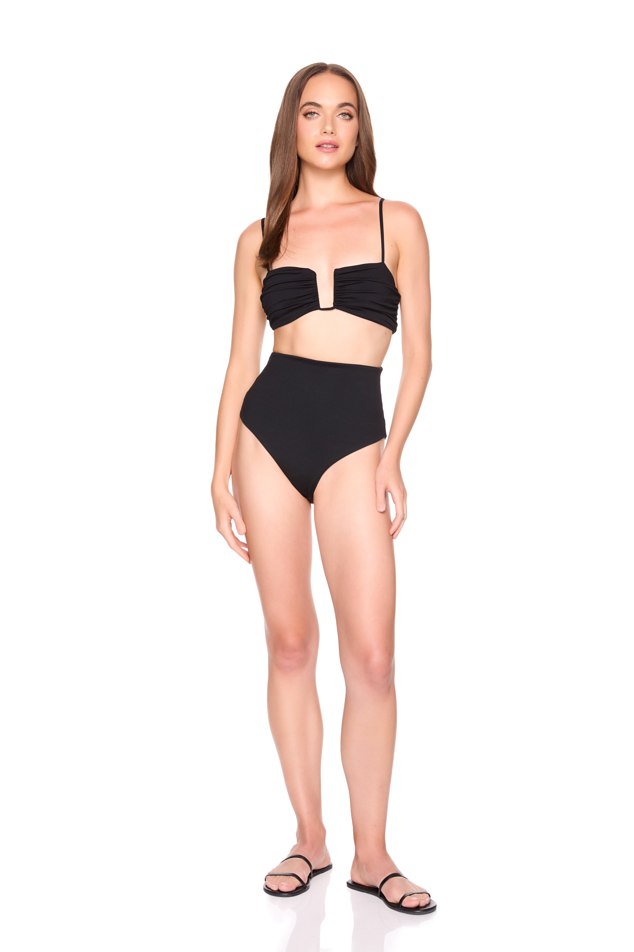 conquer the waves with our wire gathered bikini top. effortlessly embrace summer with this elegant piece. this wire gathered swimsuit has a flattering cutout and neckline. we have no doubt you will radiate confidence when you pair it with its matching tote bag and bikini bottoms.