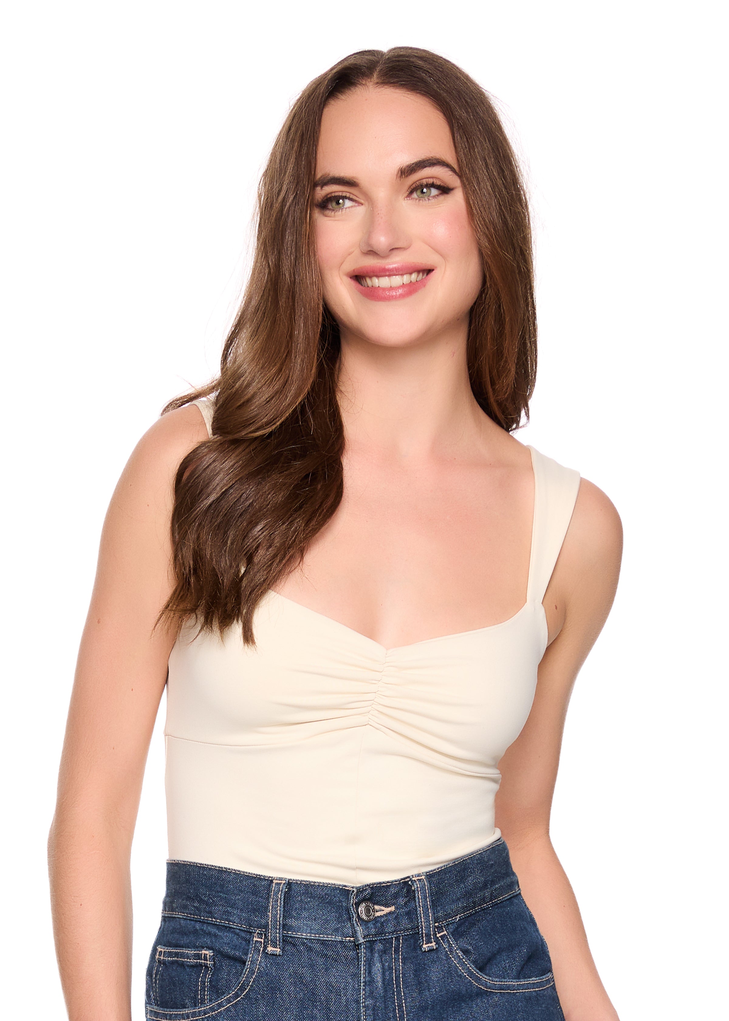 gathered front angle strap tank
