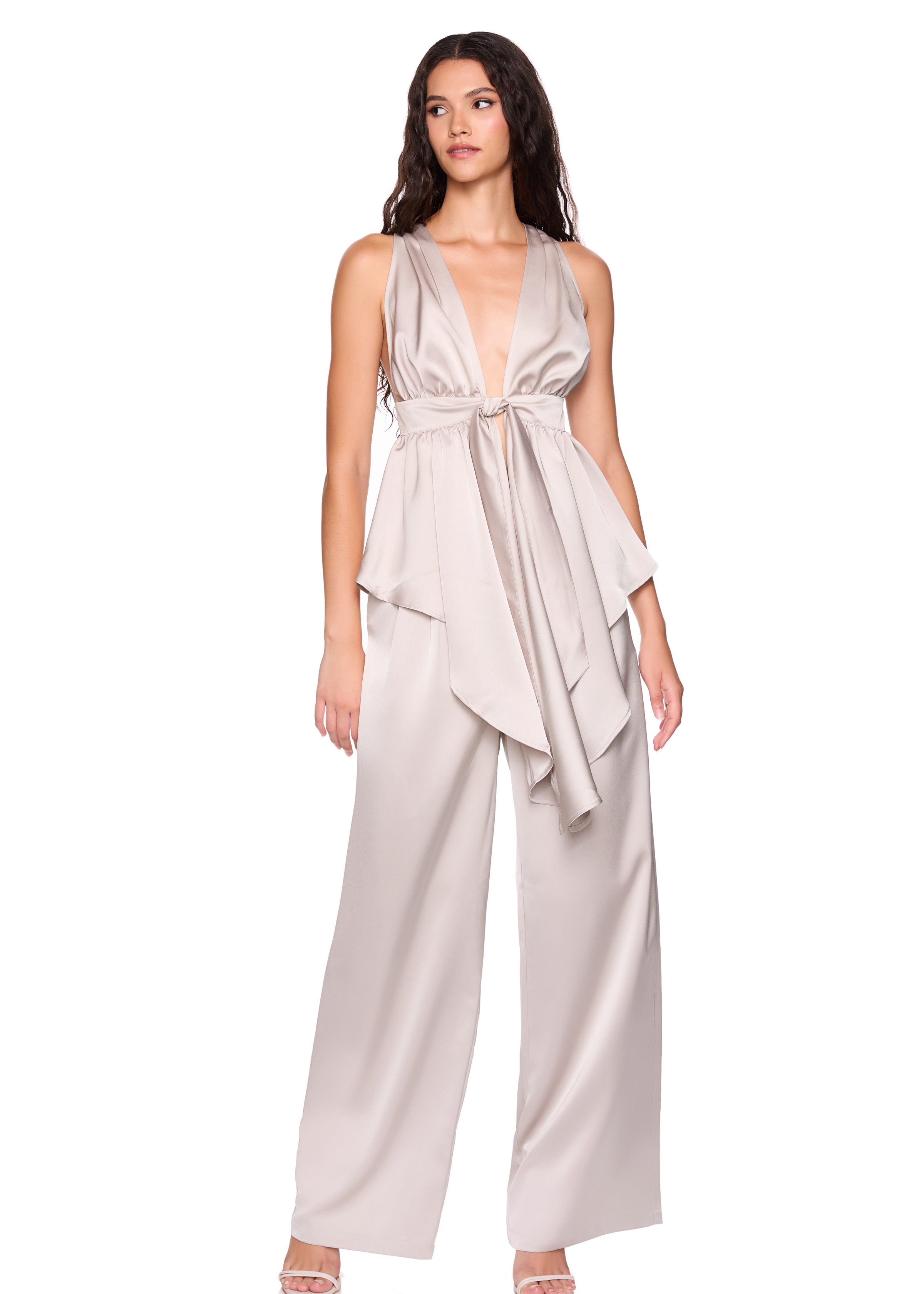 satin tie peplum high low top