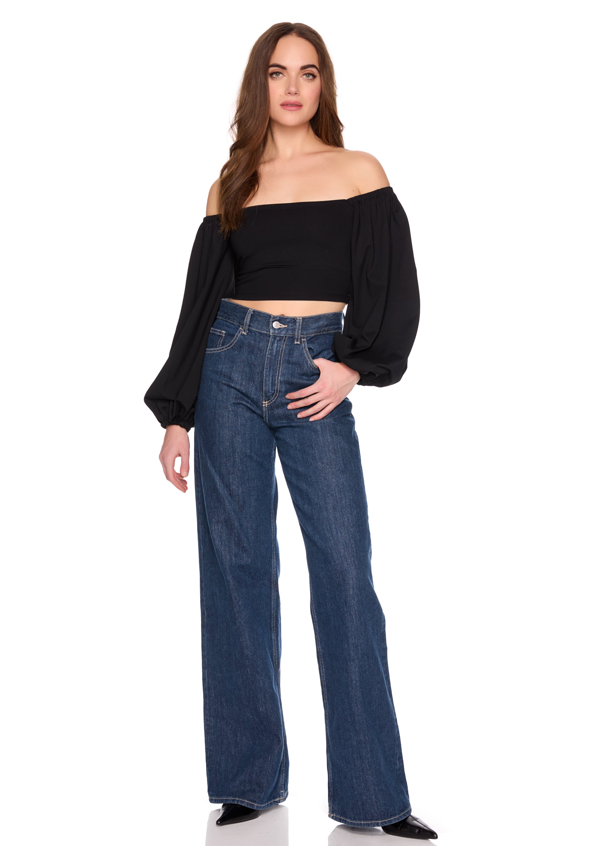 off shoulder puff long sleeve top