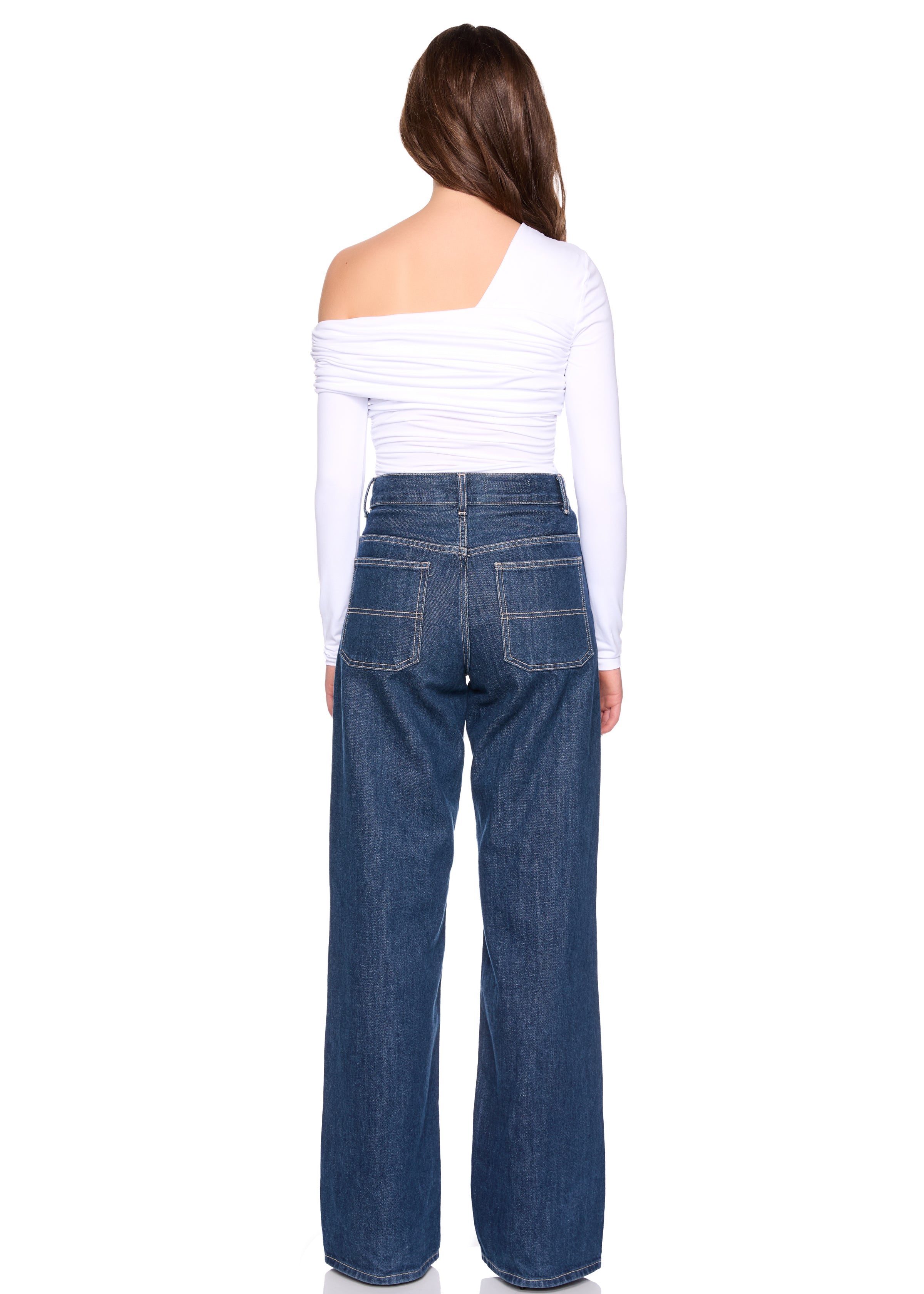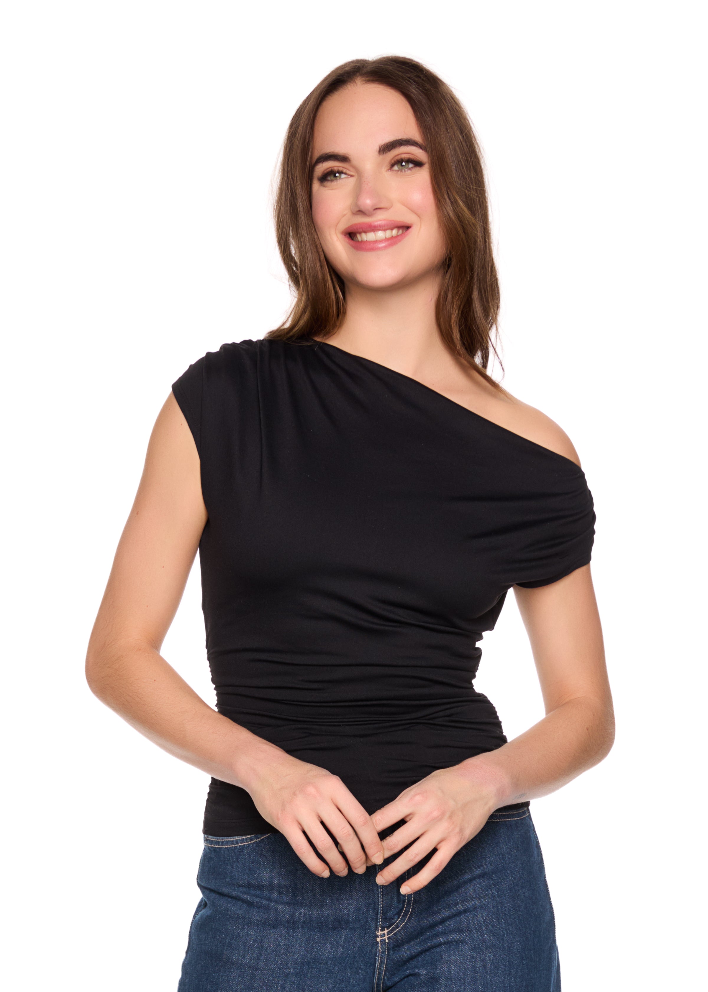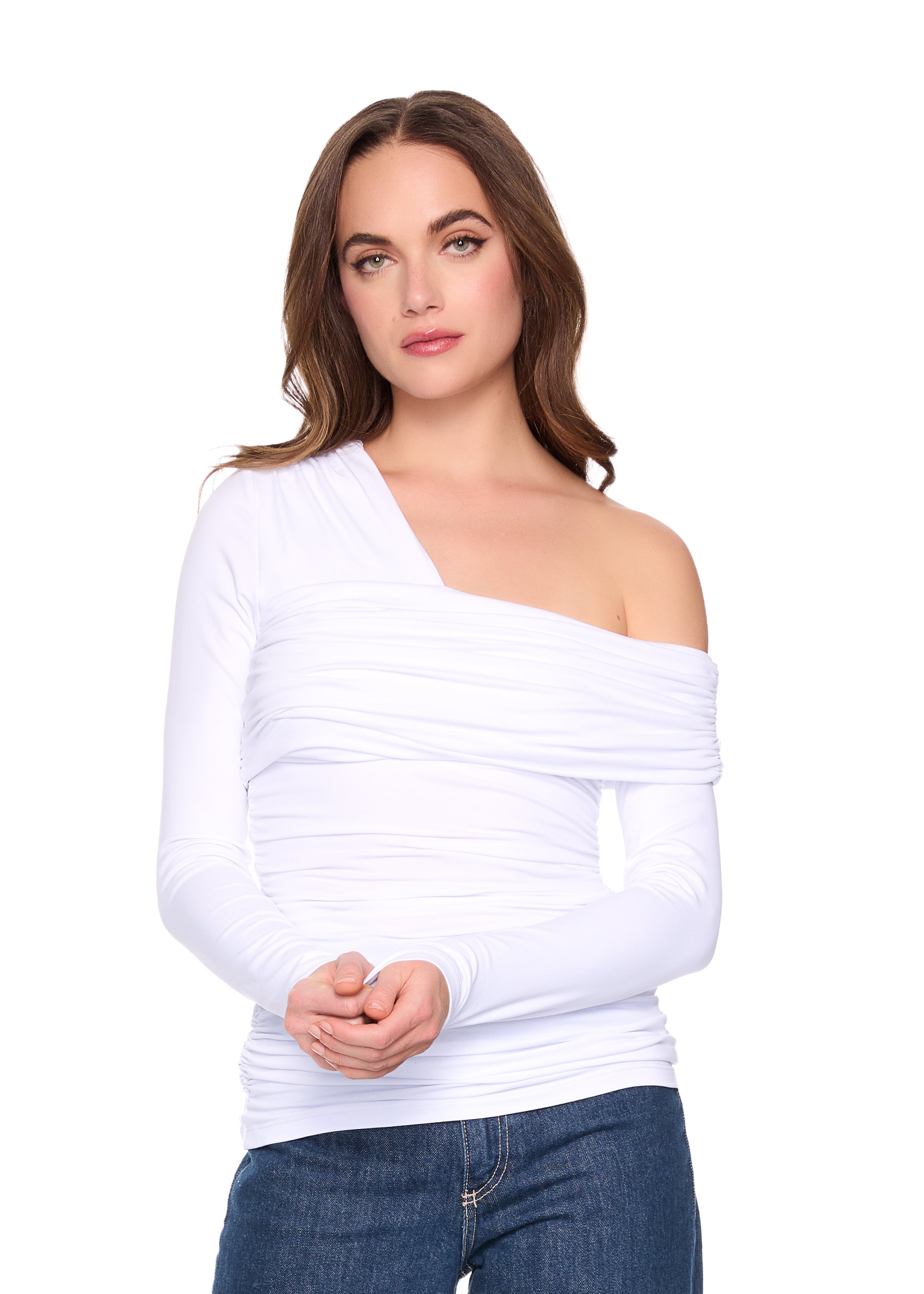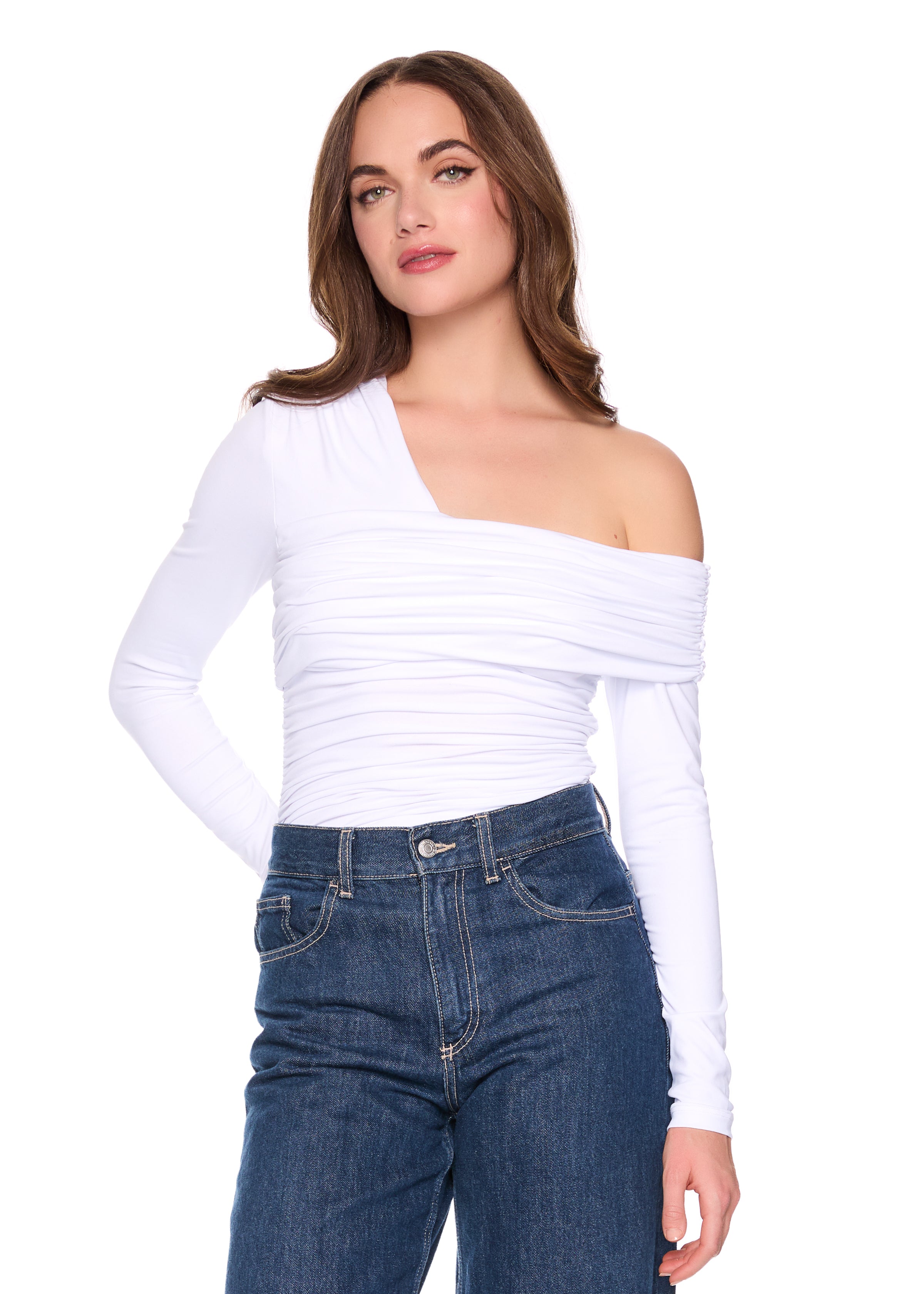 one arm off shoulder gathered top