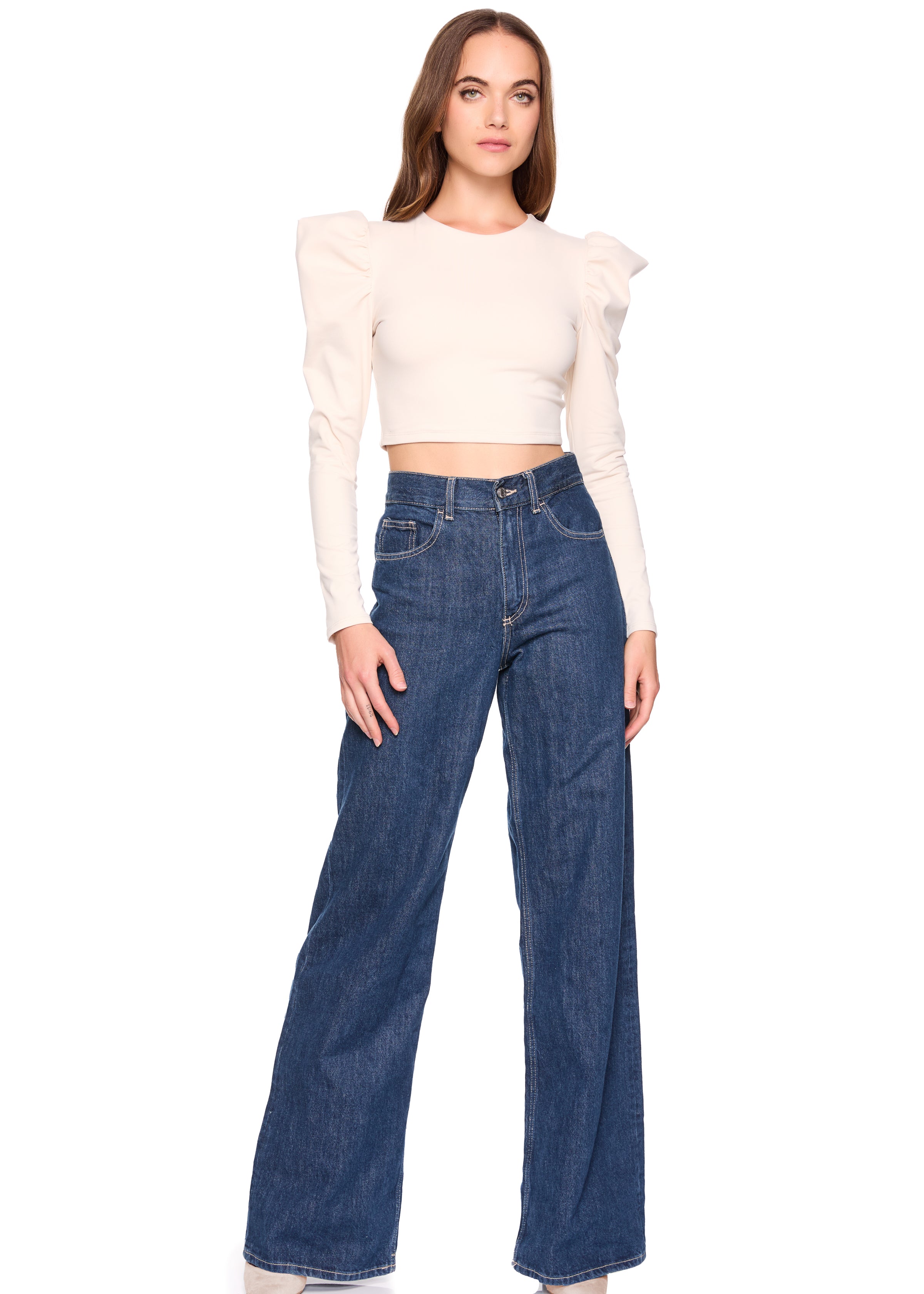square wire long sleeve crop top