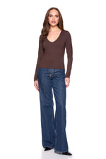 Leslie M Love the fabrics. - Always quality. However, this particular top felt very low cut while also not being long enough in the body. I do not have big boobs and I am actually short waisted. I could have delt with the neck line if the shirt had had more length. Going up a size for length/ boob area too big; Boob area better / top too short. I Tried M through XL sizes and returned all. The short sleeve v-neck is perfect and a go to for me. I think this particular top just wasn’t for me.
