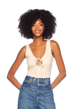 looking for a tank top that's both comfortable and cute? look no further than the circle tie tank top! this playful piece adds a touch of flirty fun to your everyday wardrobe. pair it with a jean skirt or pants to dress it up!