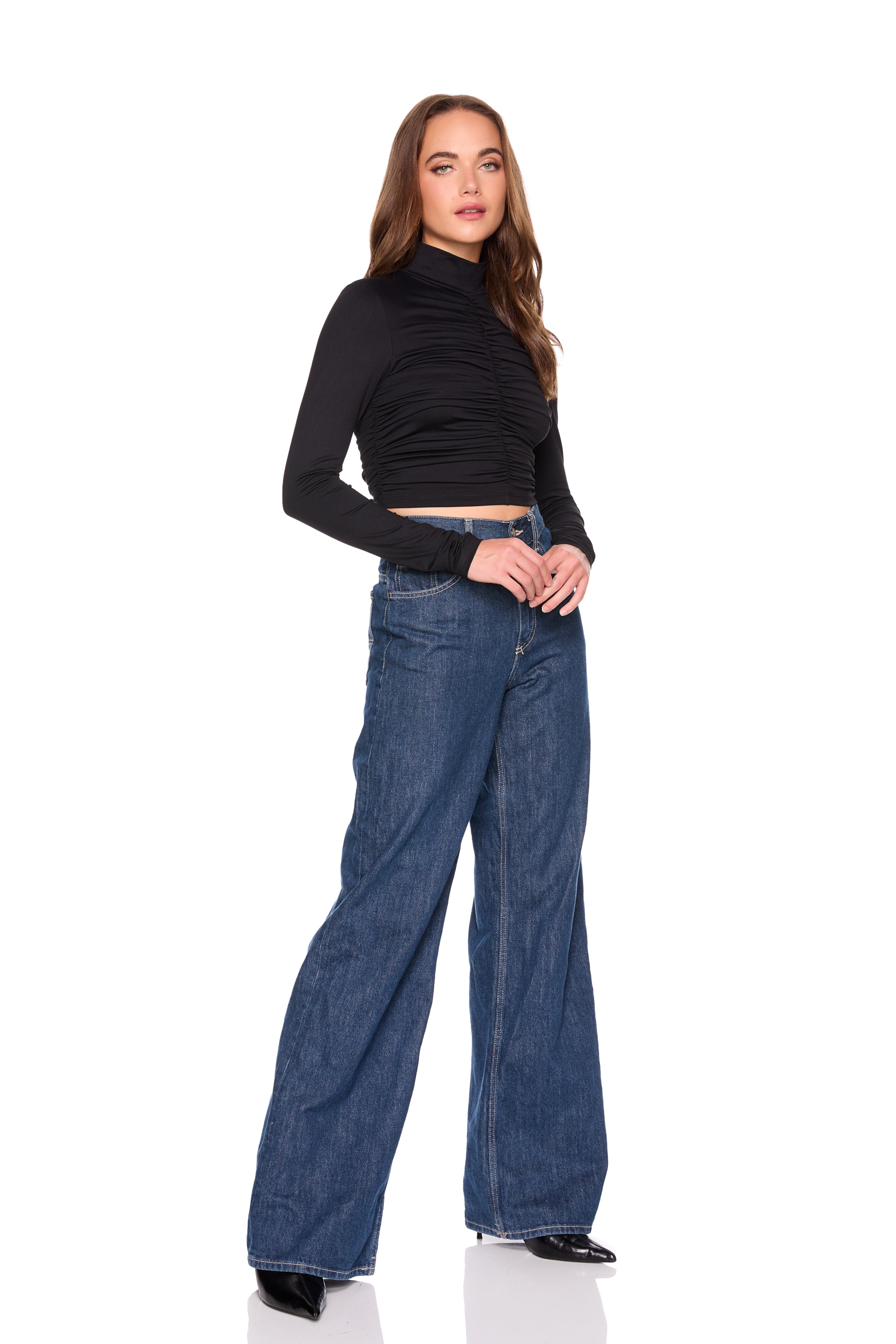 mock neck gathered top