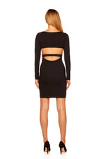 open back front long sleeve dress
