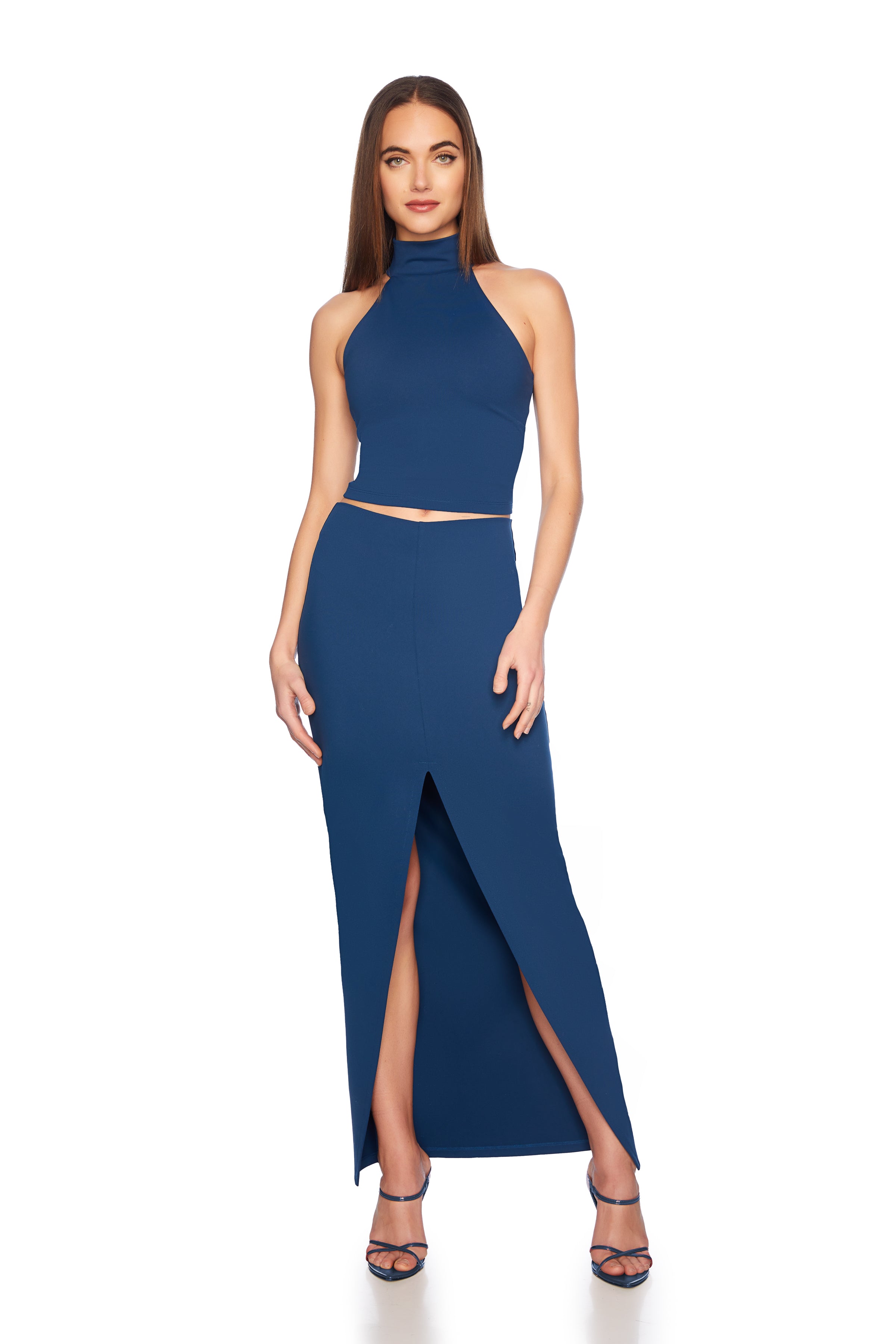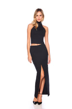 the front open skirt is a wardrobe essential that combines effortless style with undeniable flair. this skirt is perfect for any occasion, whether you're dressing for a night out, a casual brunch, or even the office. pair it with our matching mock neck sleeveless top, 0824supt01046.