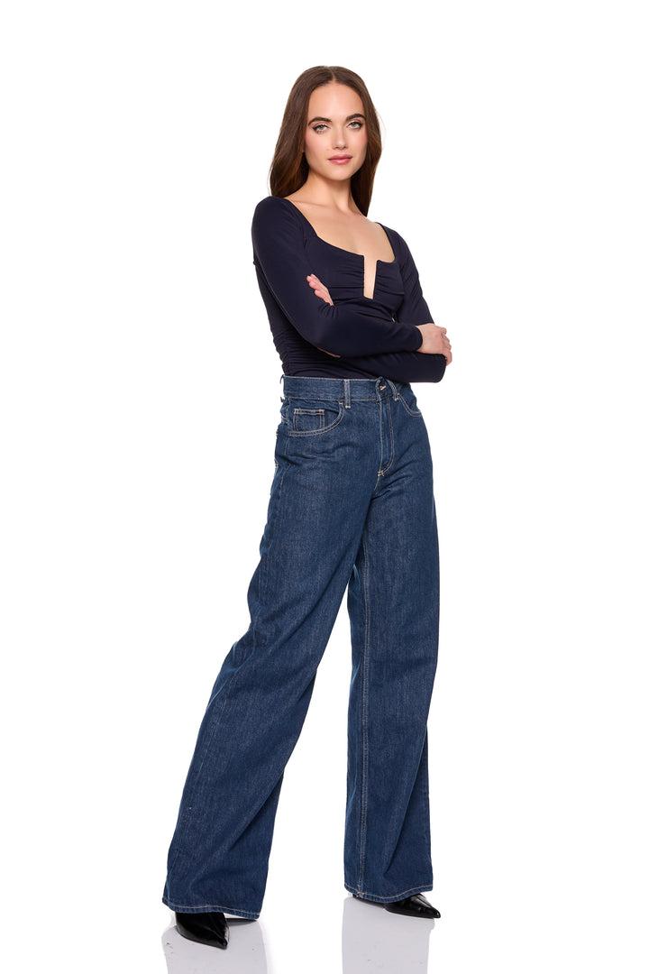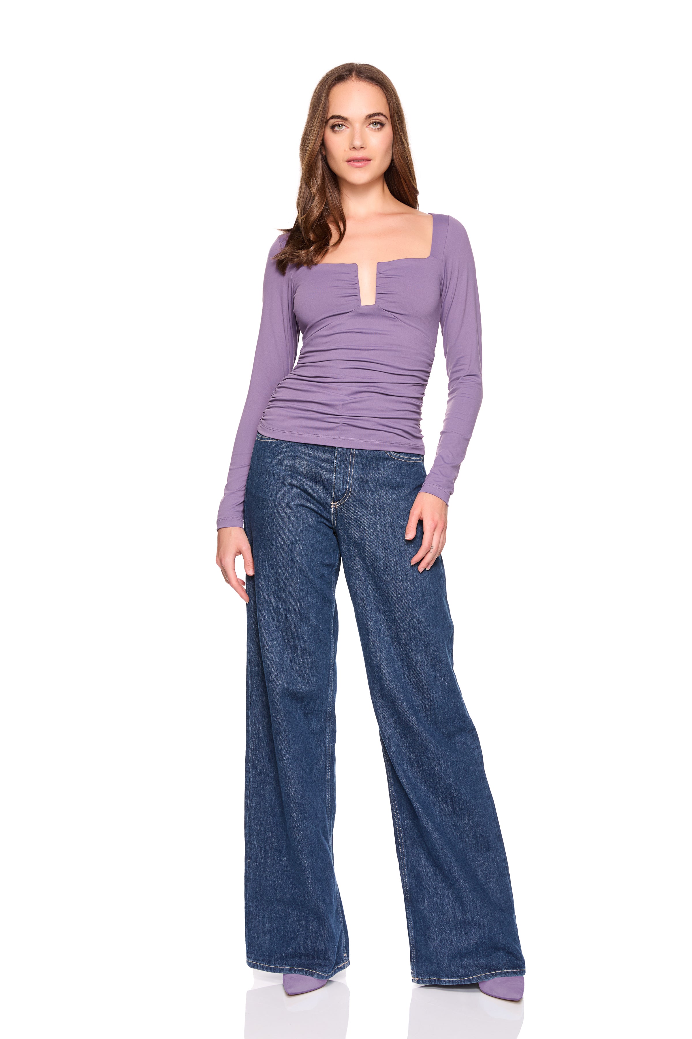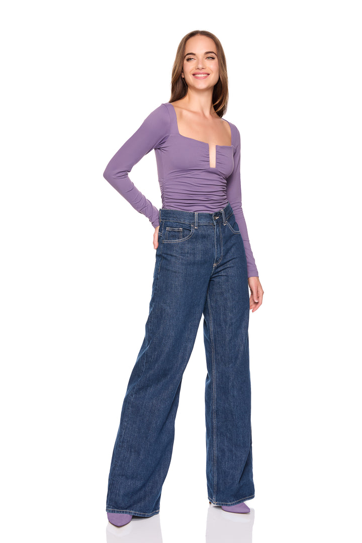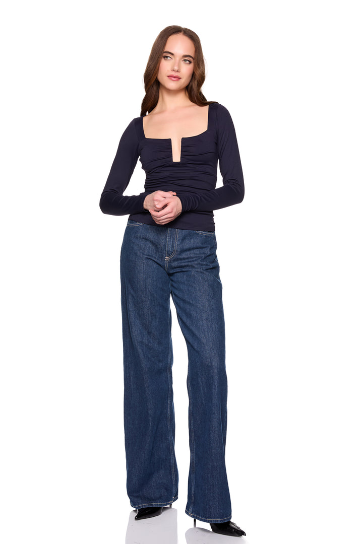 square wire gathered long sleeve